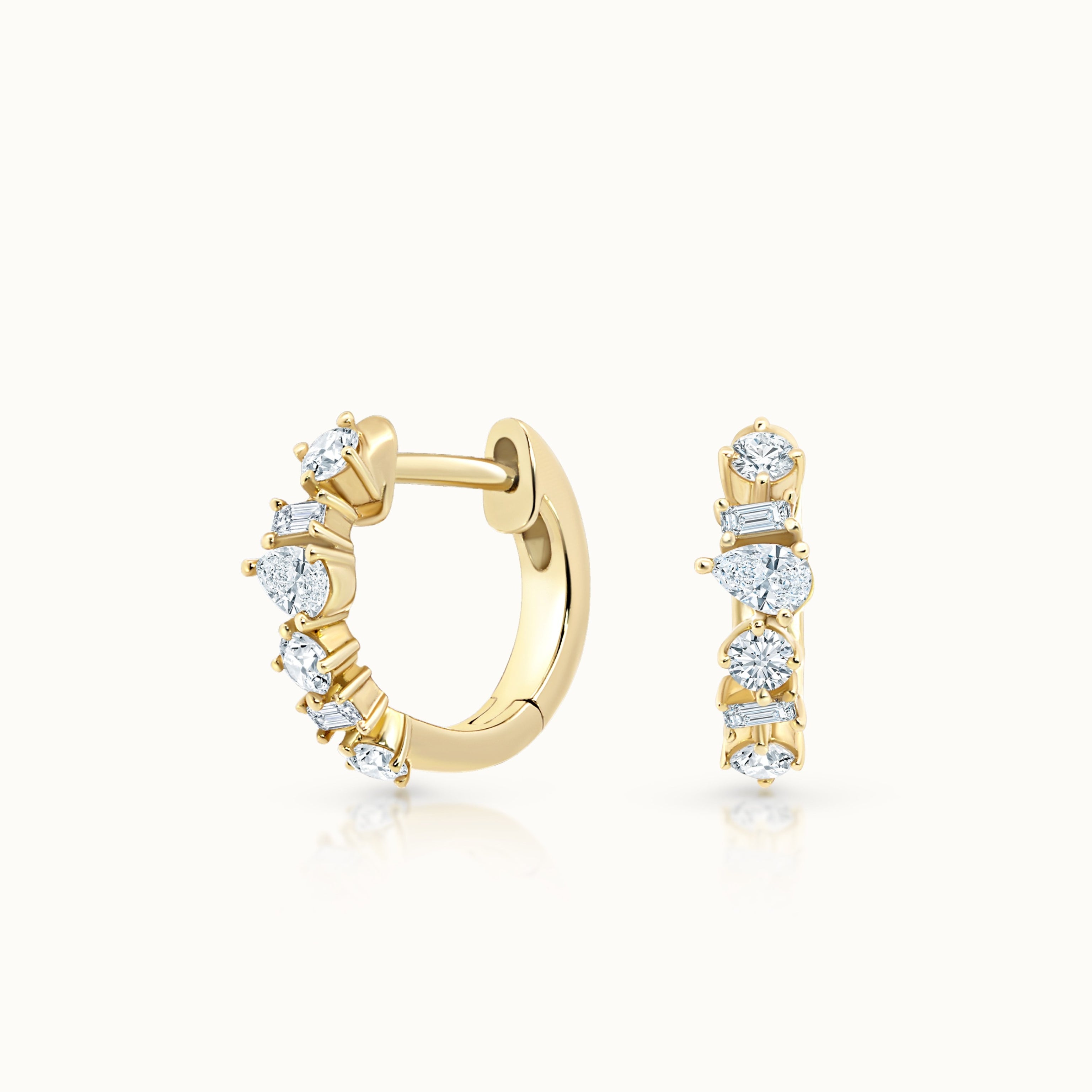 These huggies feature a mix of diamond shapes for a playful sparkle that dances with every movement. A whimsical twist on a classic style, perfect for stacking or wearing alone.