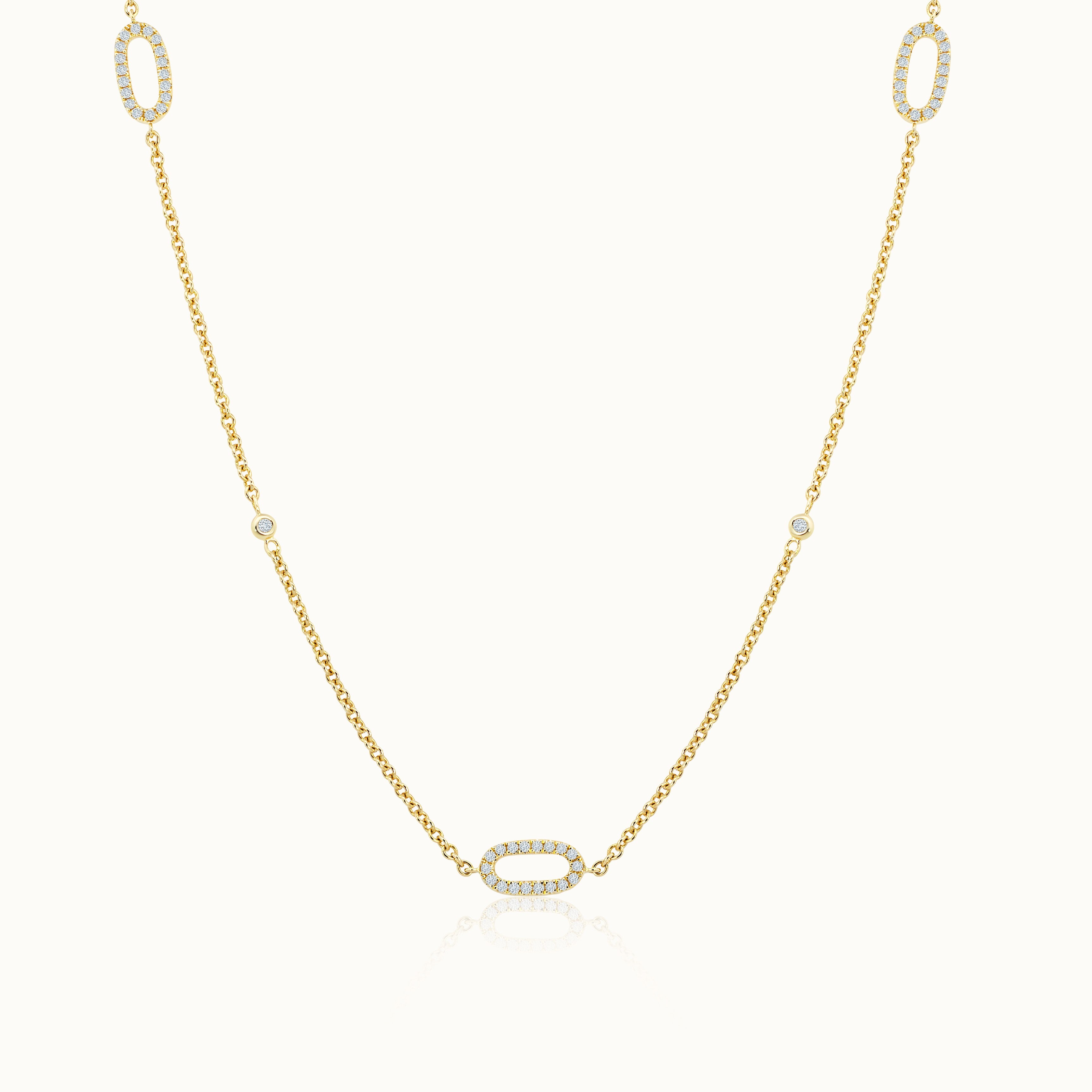 36" 18K Yellow Gold Diamond Oval Link Station Necklace