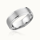 Men's 14K White Gold Wedding Band with Sandpaper Center and Beveled Edges