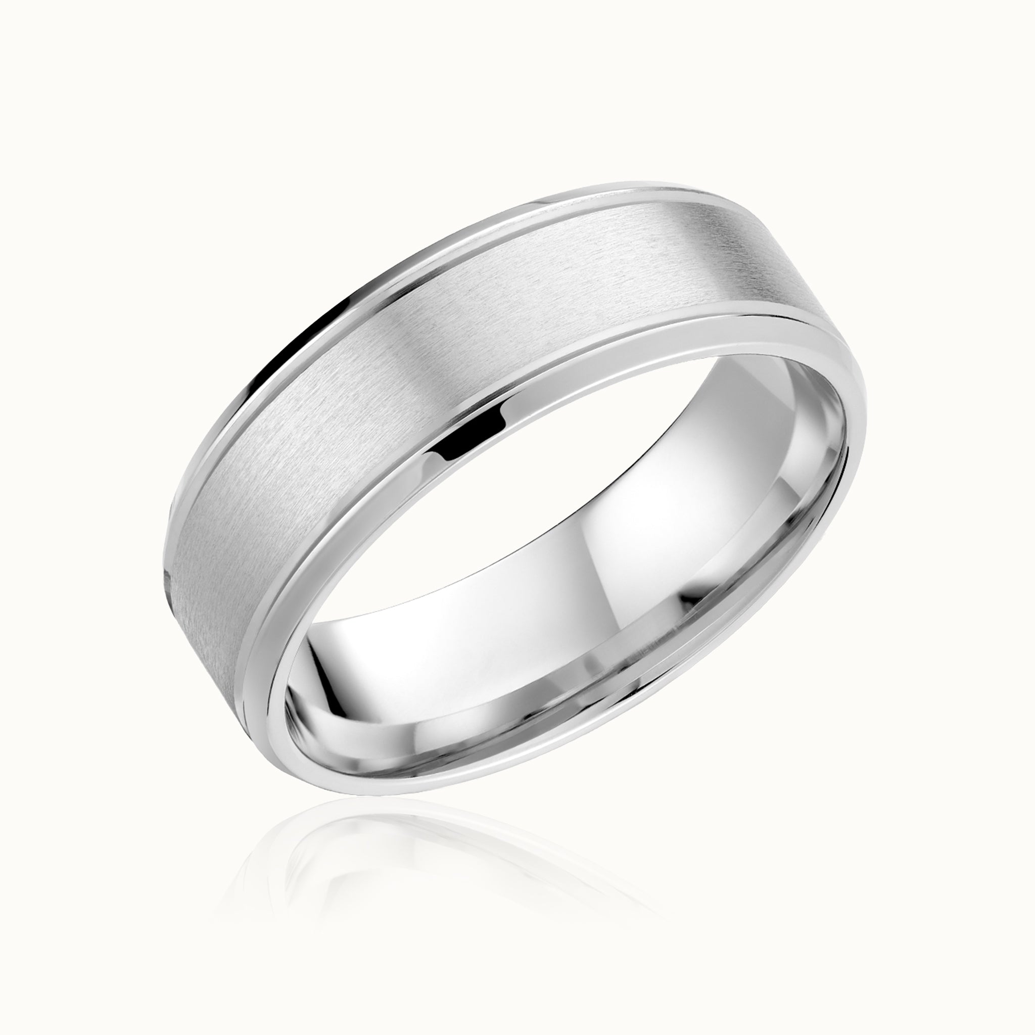 Men's 14K White Gold Wedding Band with Sandpaper Center and Beveled Edges