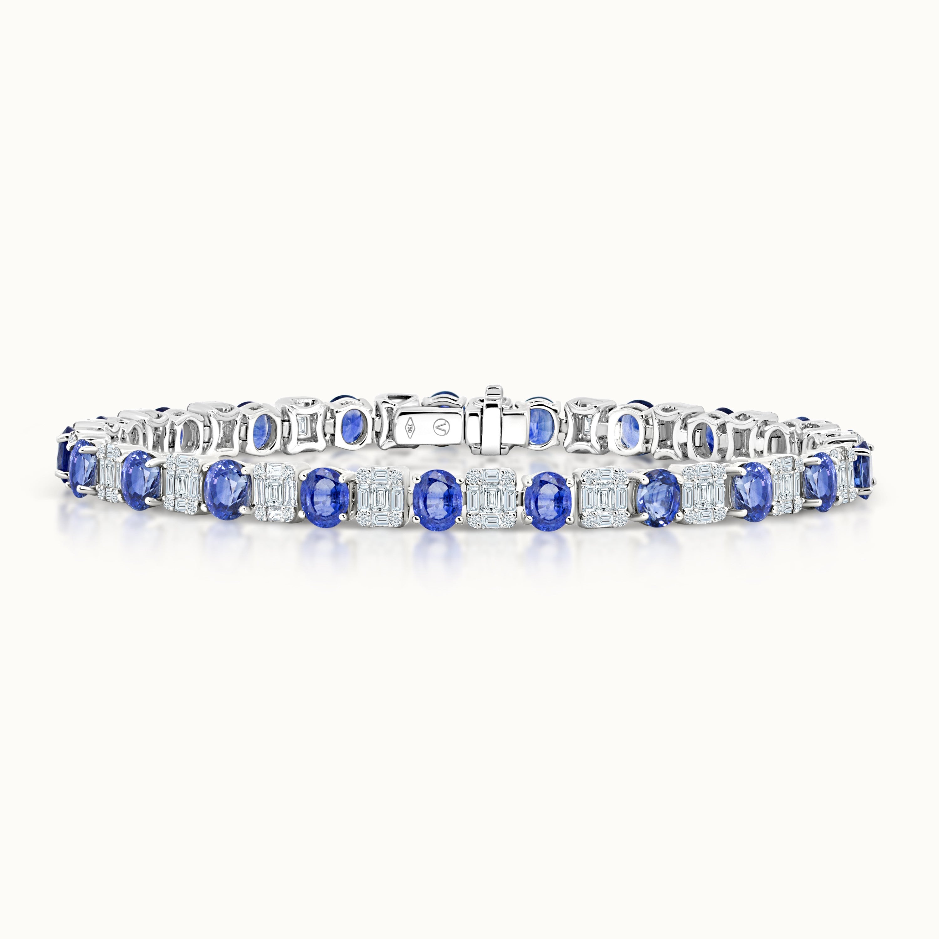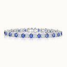 Classic with a vibrant twist, this diamond and sapphire line bracelet features alternating stones that create a captivating rhythm of light and color.