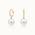 Classic and graceful — these pearl drop earrings feature luminous pearls suspended from diamond-accented huggies.