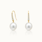 Elegant and modern — these earrings showcase lustrous pearls suspended from delicate, diamond-accented hooks. A combination of subtle sparkle and graceful movement.