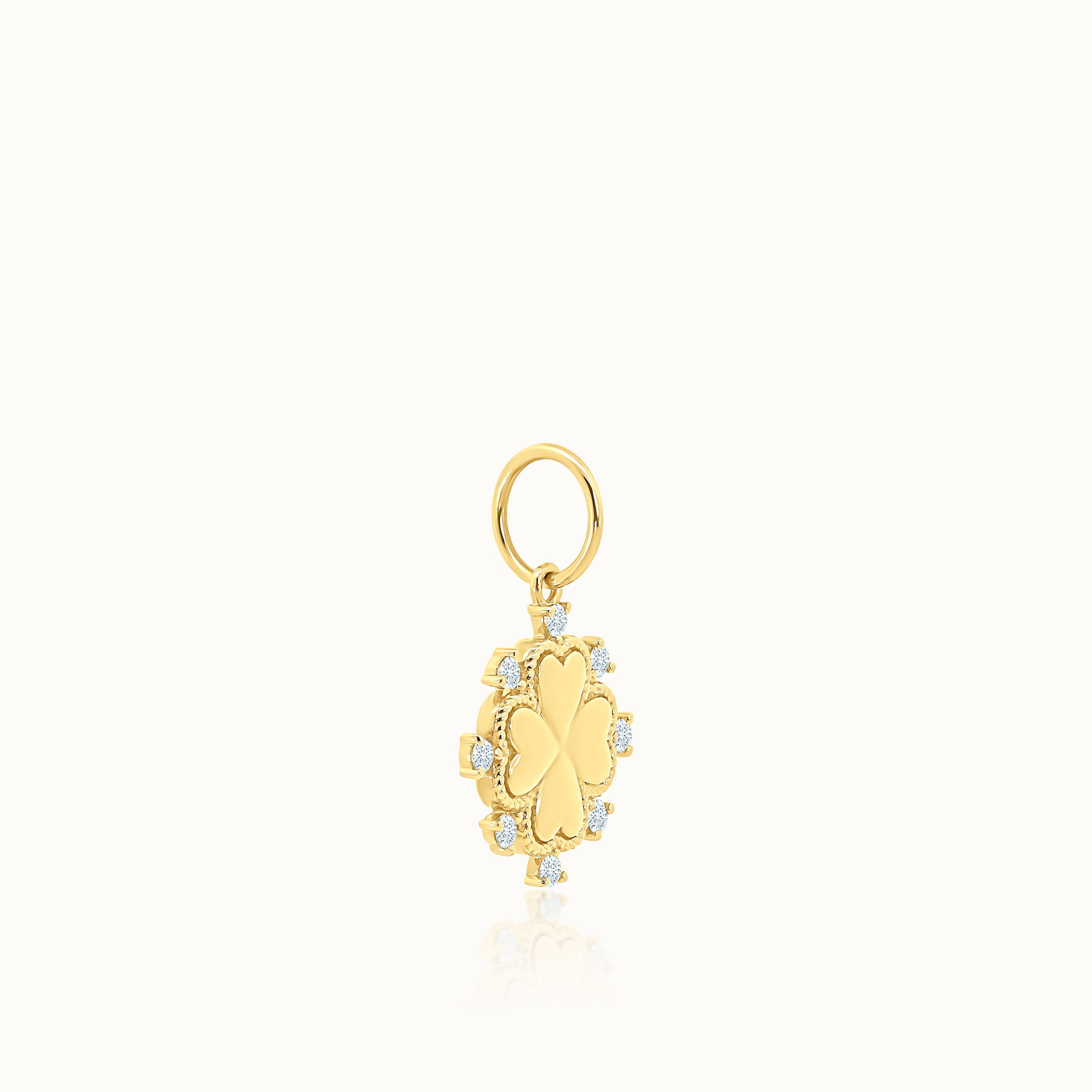 Whimsy with an edge. This yellow gold clover charm is framed by radiant diamond spikes, blending playful symbolism with bold brilliance. A lucky charm that makes a striking statement.