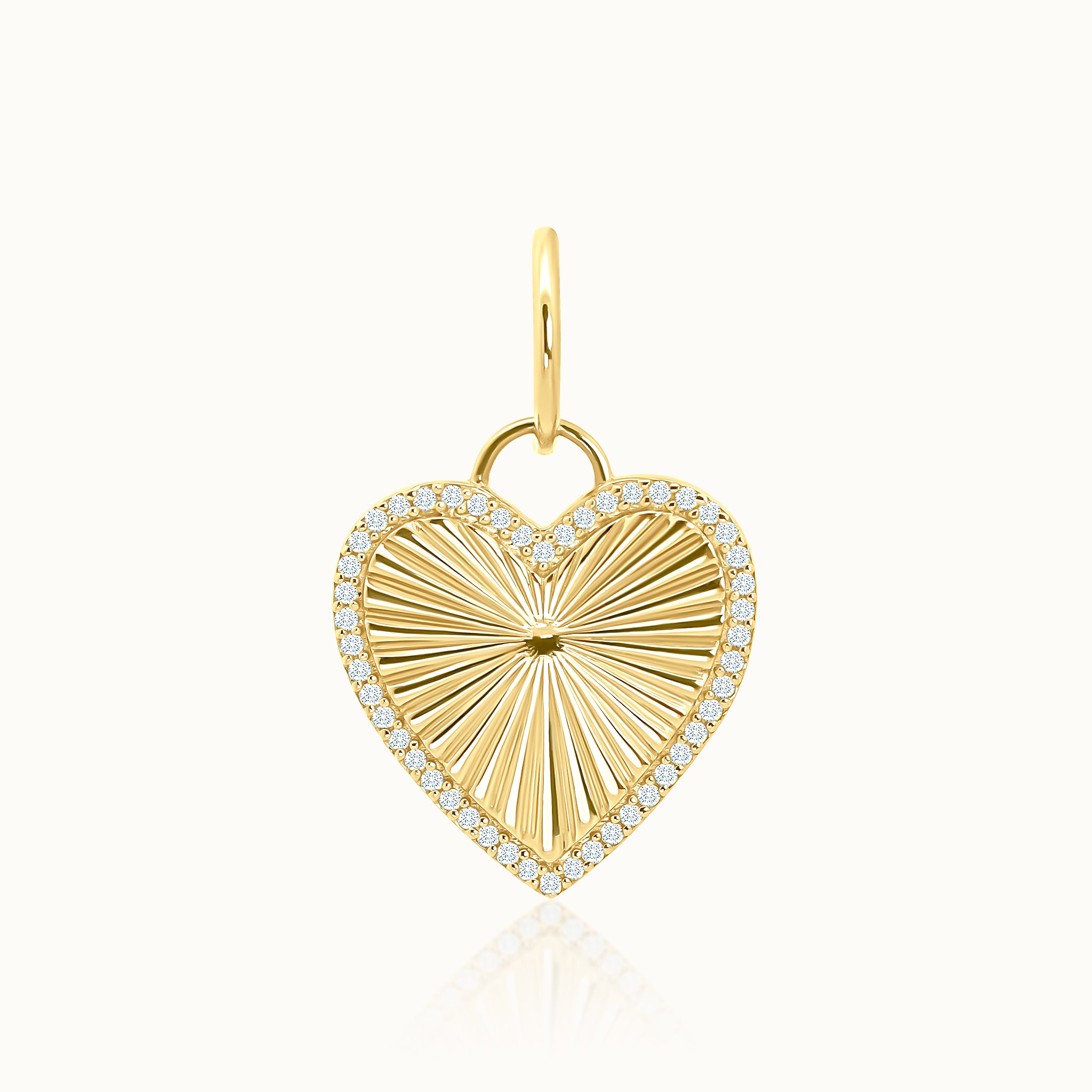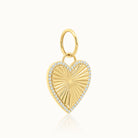 Radiant from every angle. This ridged yellow gold heart charm is encircled by a shimmering diamond halo, blending texture and brilliance in perfect harmony.