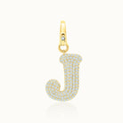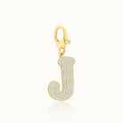 Personalized sparkle. This yellow gold “J” charm is adorned with pavé-set diamonds, adding brilliance to its elegant curve. A radiant initial that shines with individuality and style.