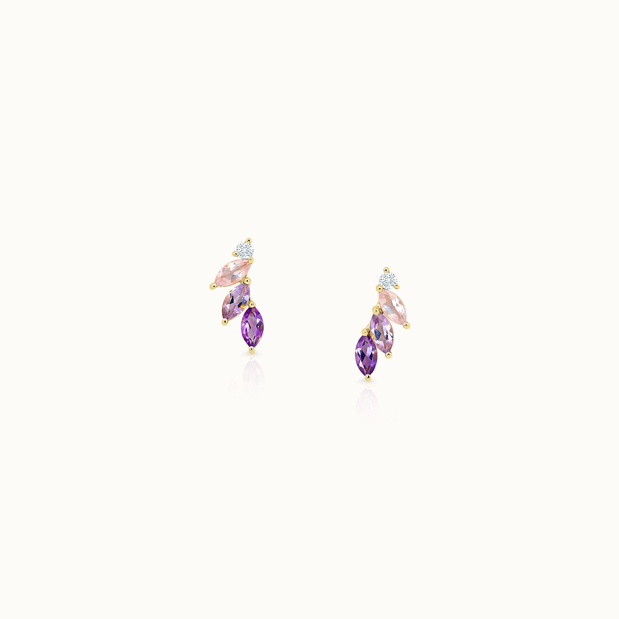 14K Yellow Gold Ombre Amethyst & Diamond Climber Earrings
