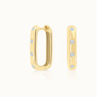 Elegant and modern, these elongated hoops feature burnished diamonds nestled along their curves for a subtle, sparkling effect. A sleek, sophisticated design that adds graceful movement and light to every look.