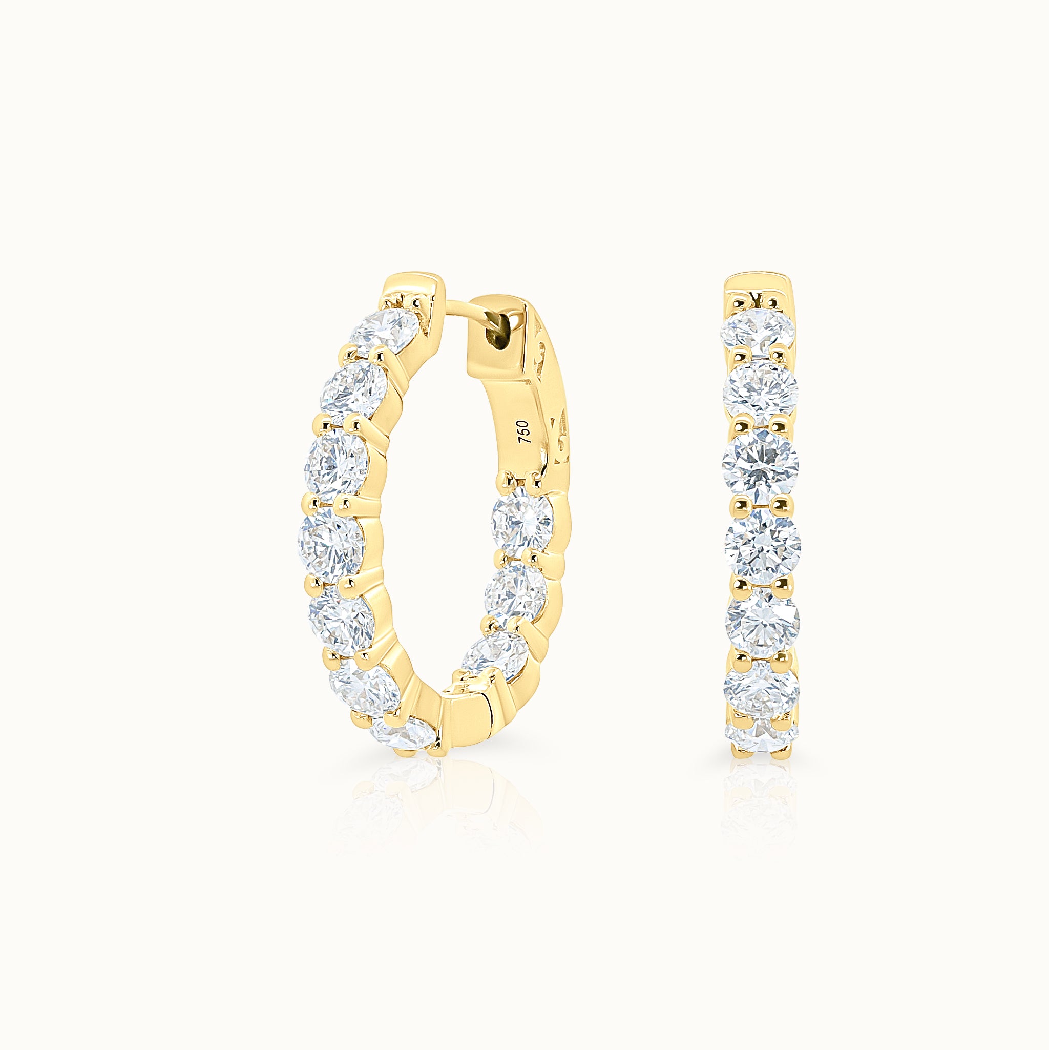 18K Yellow Gold Diamond In & Out Hoop Earrings