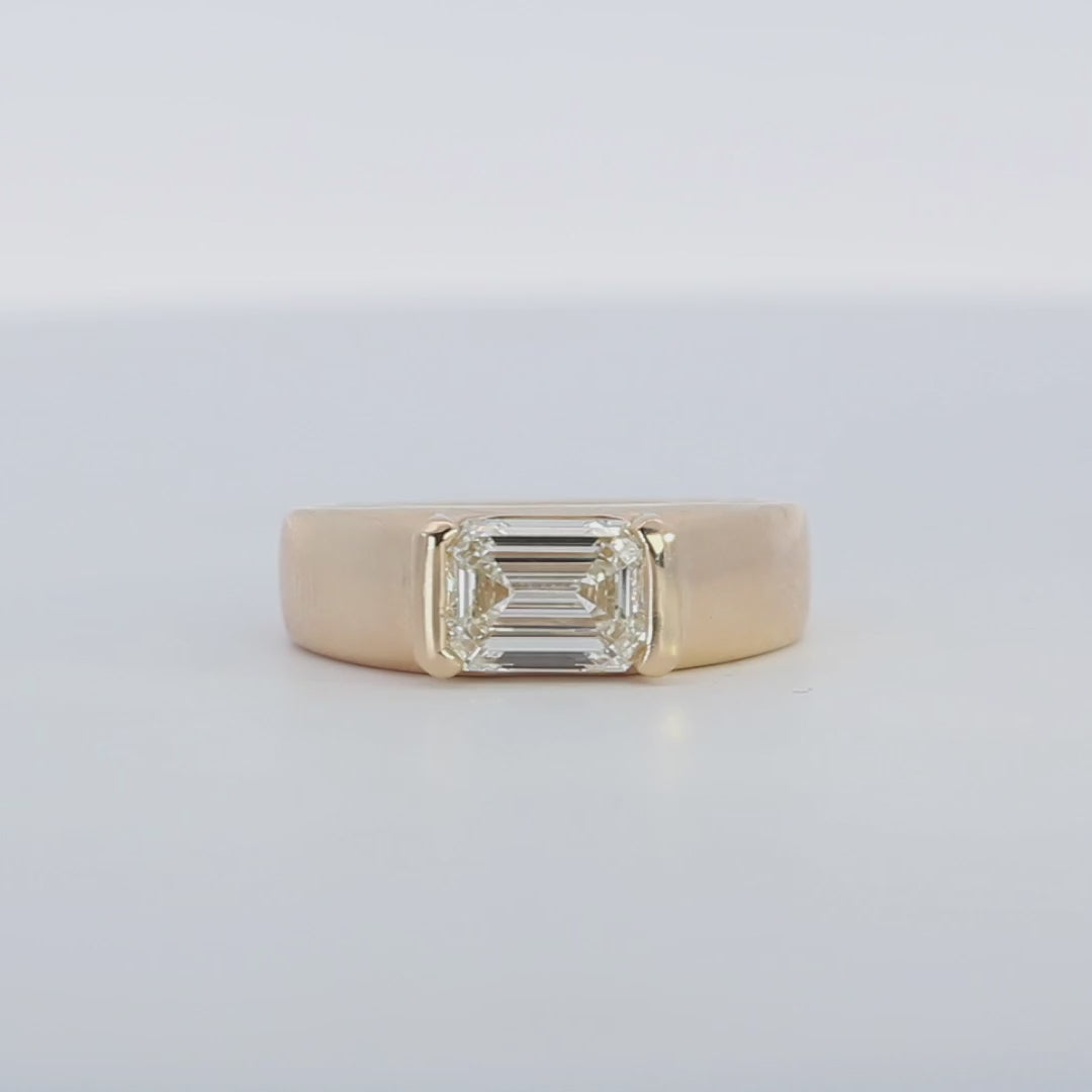 Half Bezel Emerald Cut Diamond Wide Band