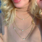 A pre-owned David Yurman 18 karat yellow gold pearl station necklace featuring stationed cultured pearls on a 72 inch box chain with the David Yurman logo stations.