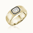 Men's 14K Yellow Gold Wedding Band with Emerald Cut Diamond