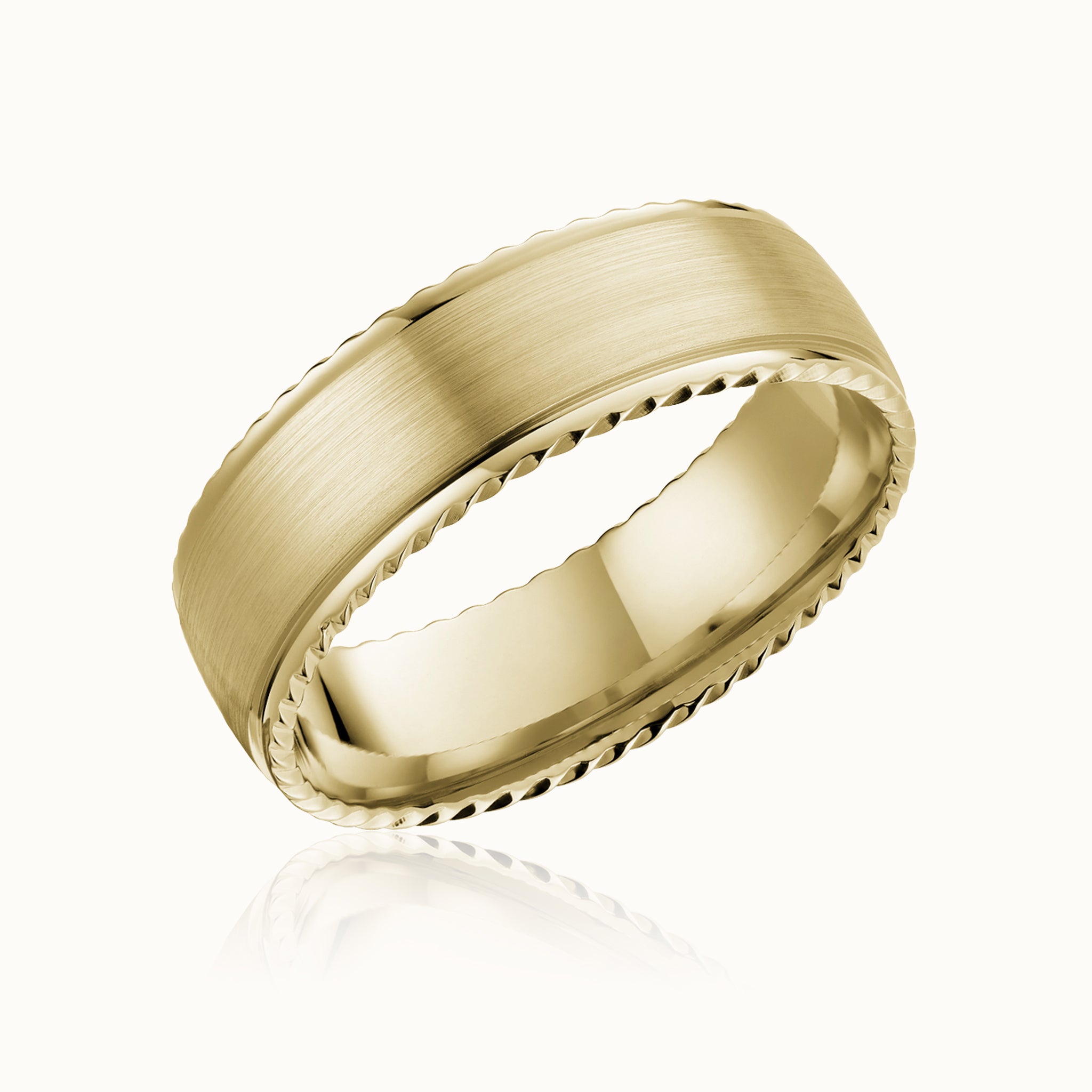 Men's 14K Yellow Gold Wedding Band with Sandpaper Center and Rope Detailing