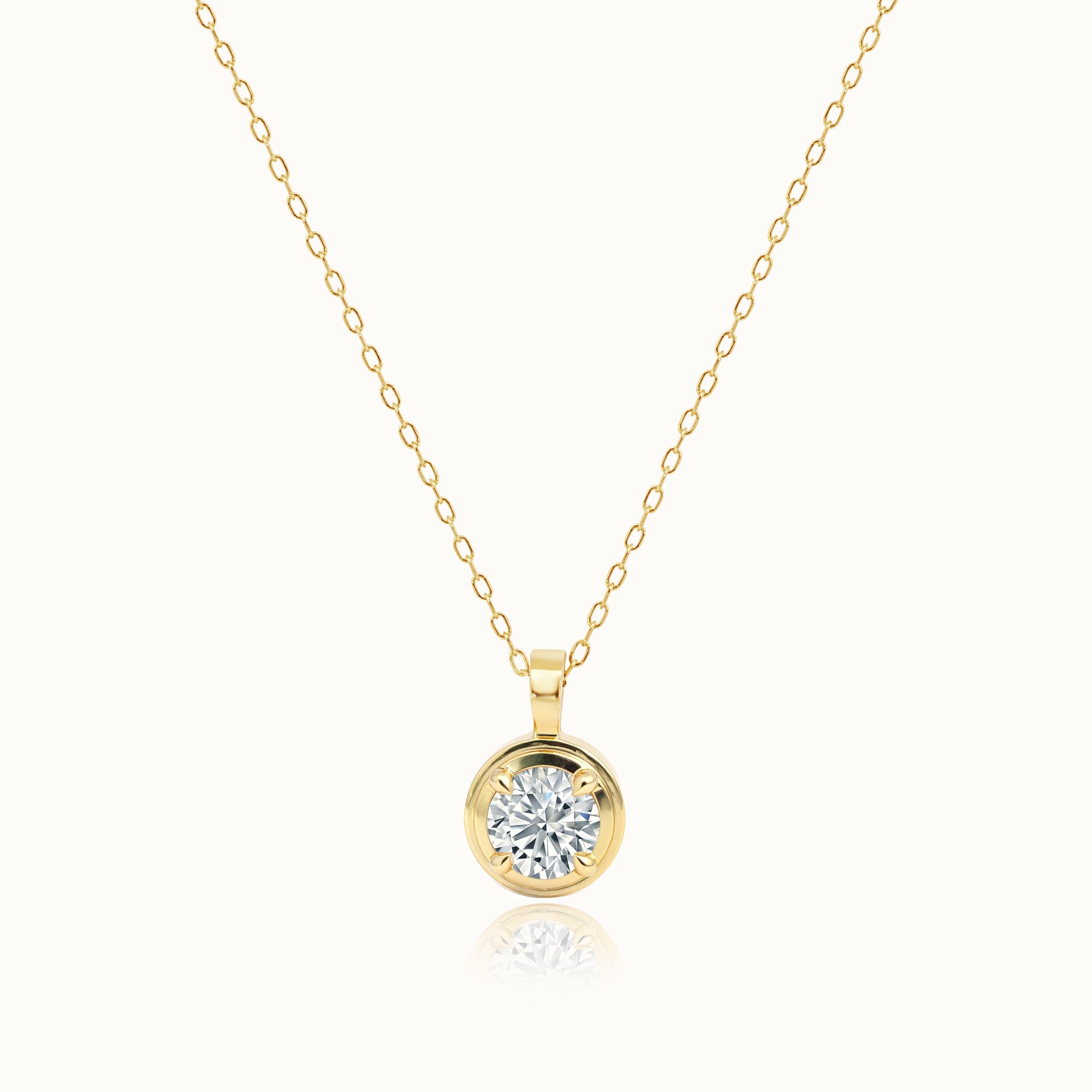 Bold and brilliant, this gold necklace features a substantial bezel-set diamond pendant that makes a striking statement. Its generous sparkle and sleek setting create a timeless piece designed to shine, whether worn alone or layered.