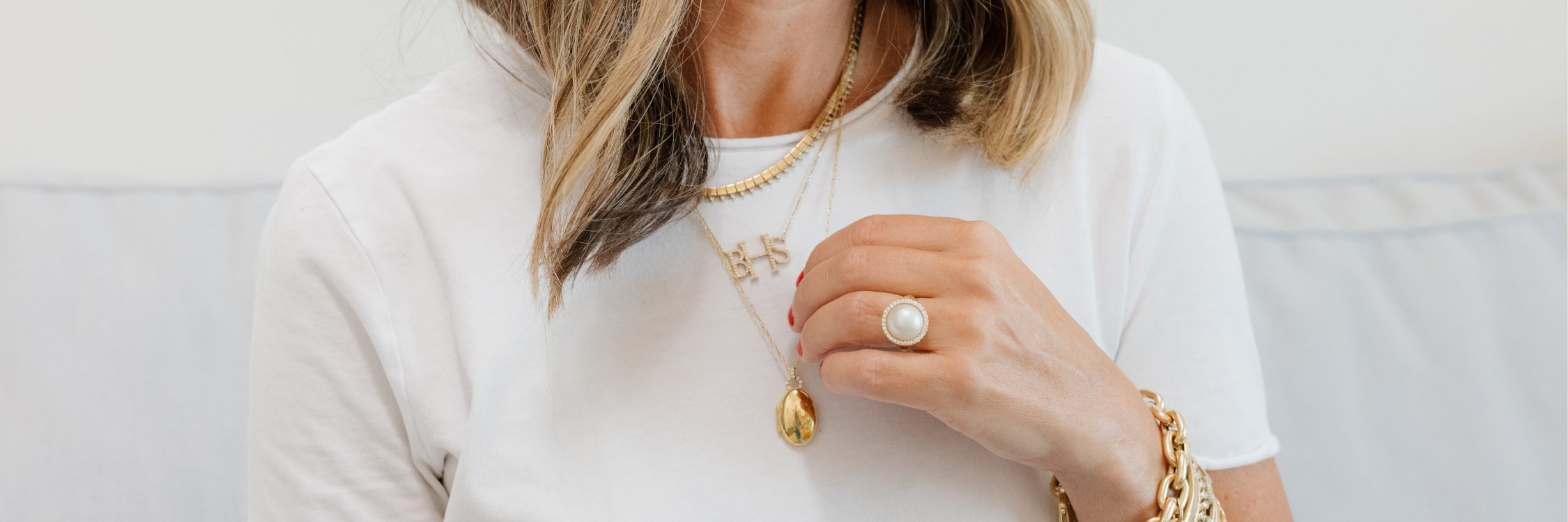 From a custom pendant bearing her family’s initials to a classic locket, Emily's stack is unique but still perfect for everyday.