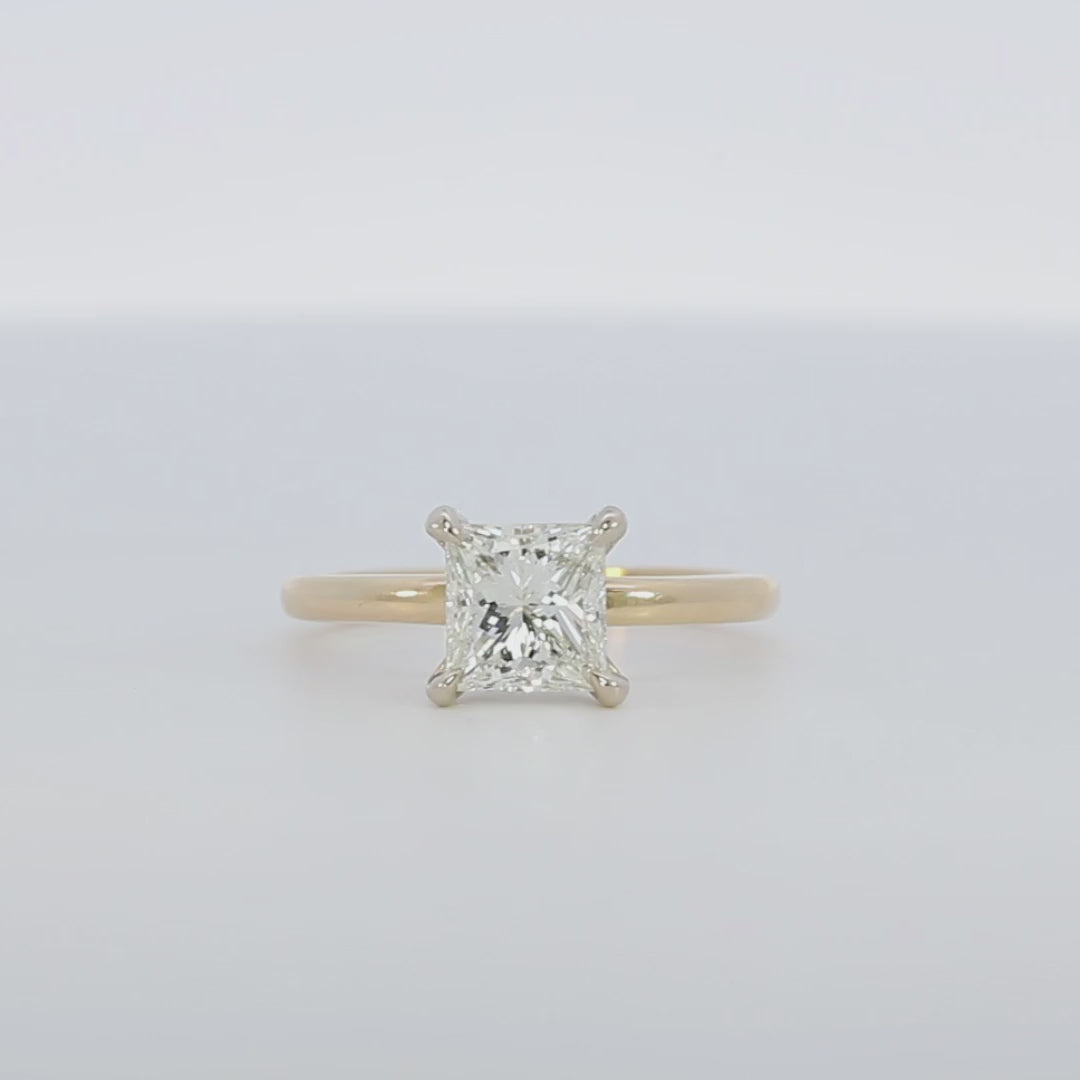 Two Tone Princess Cut Diamond Solitaire