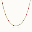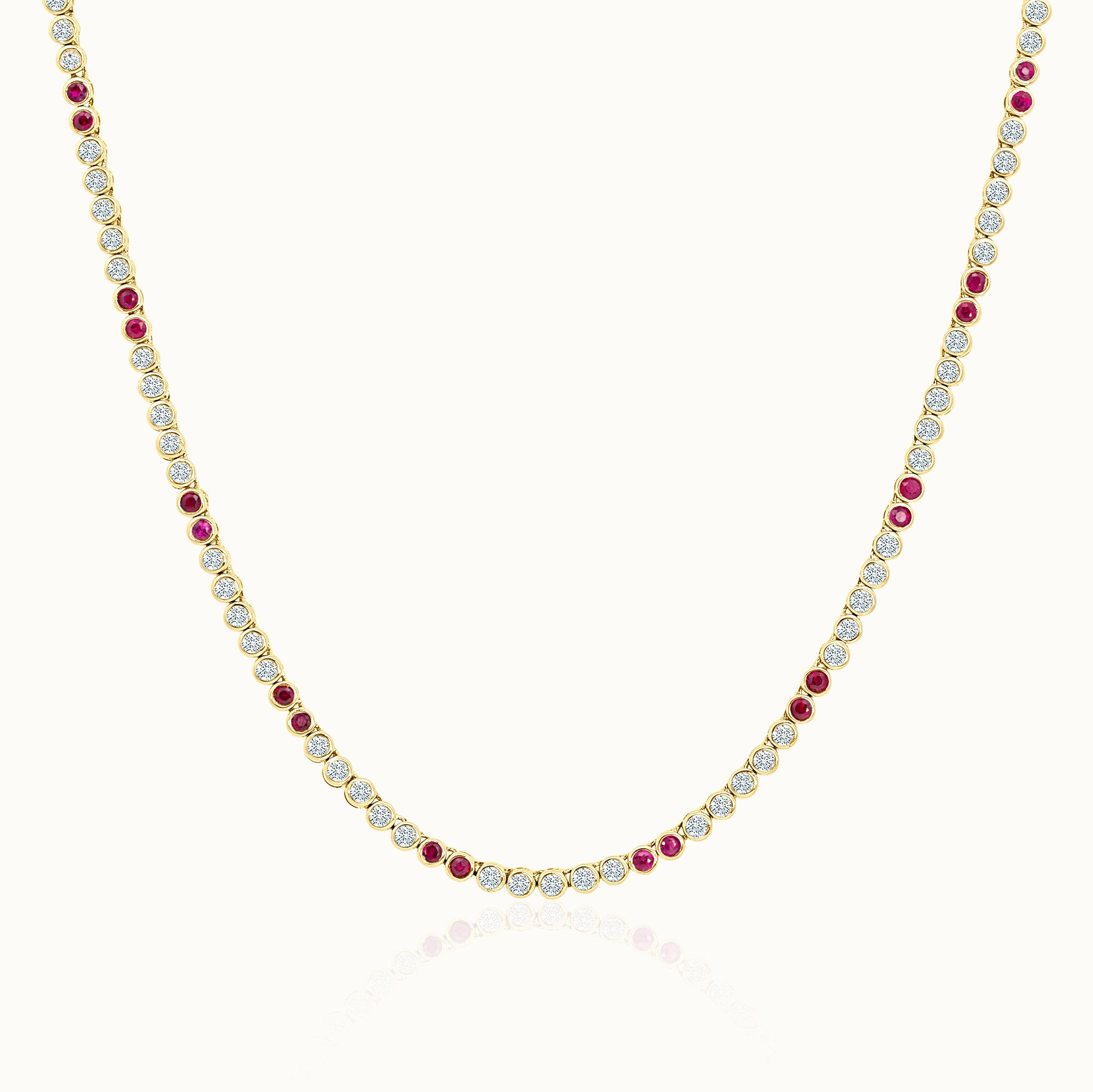 14k Yellow Gold Ruby & Diamond Bezel Set Line Necklace
